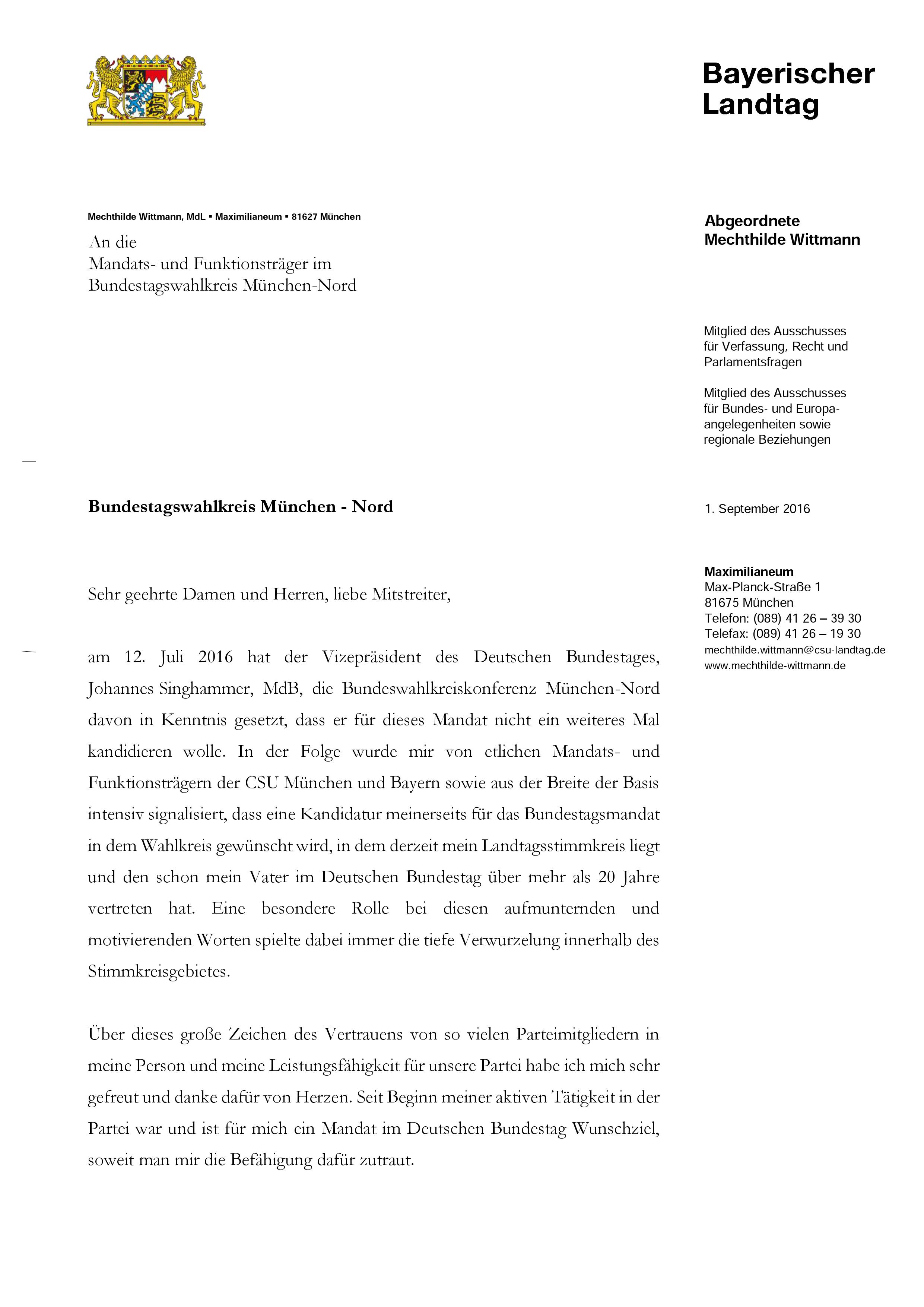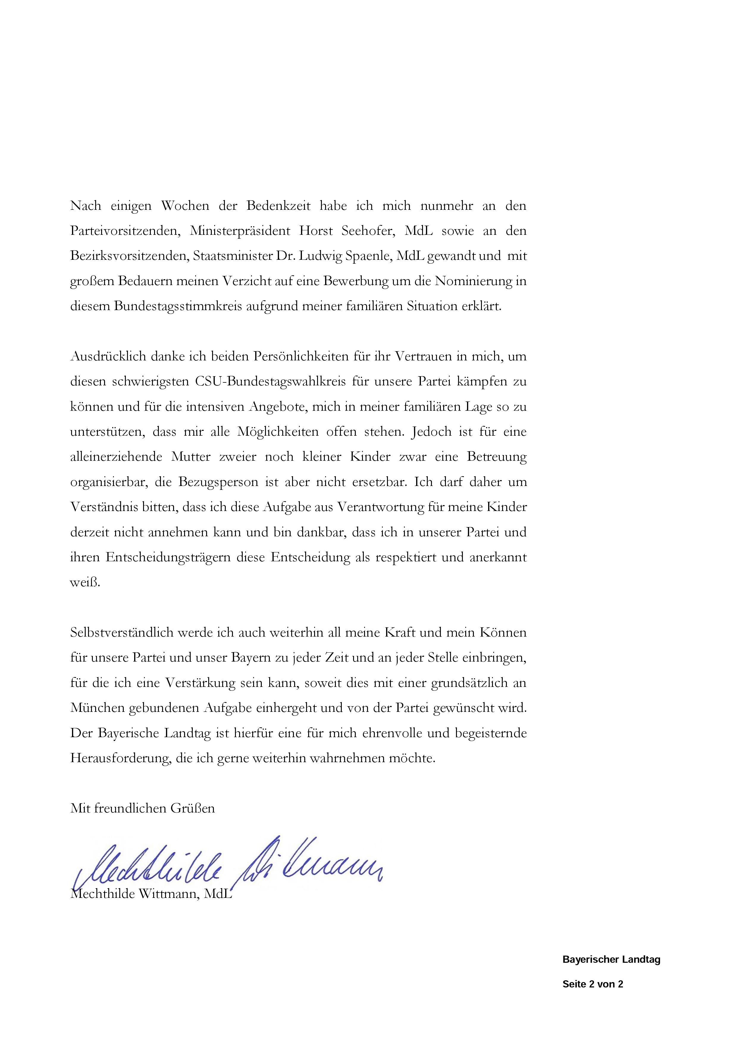 Anbei meine Erklärung zum Verzicht für die Nominierung für das Bundestagsmandat.